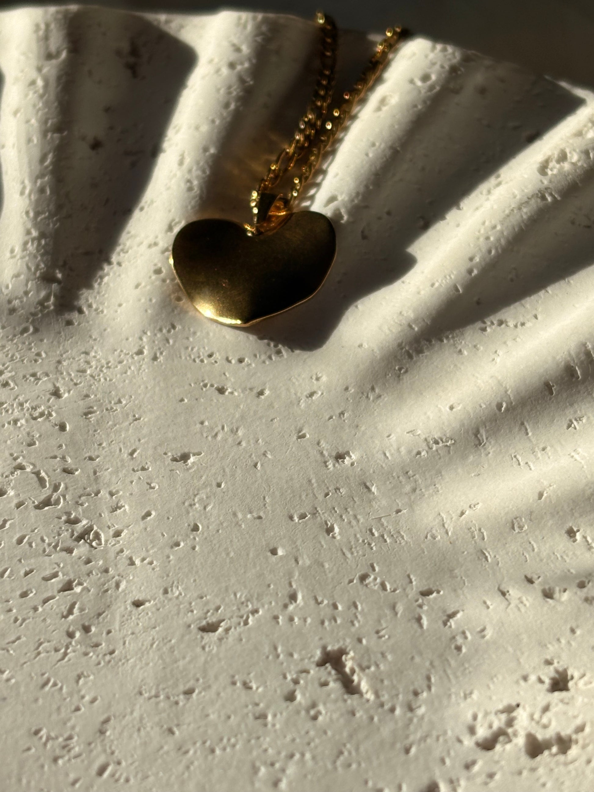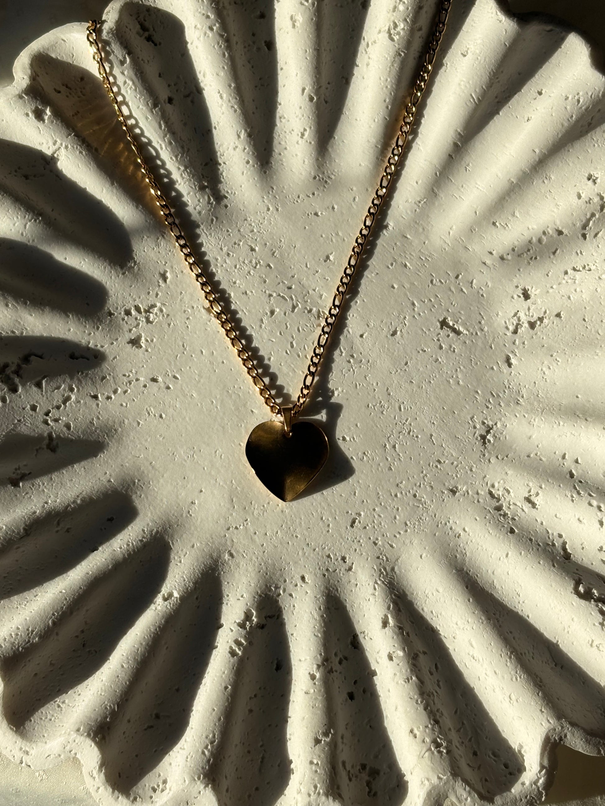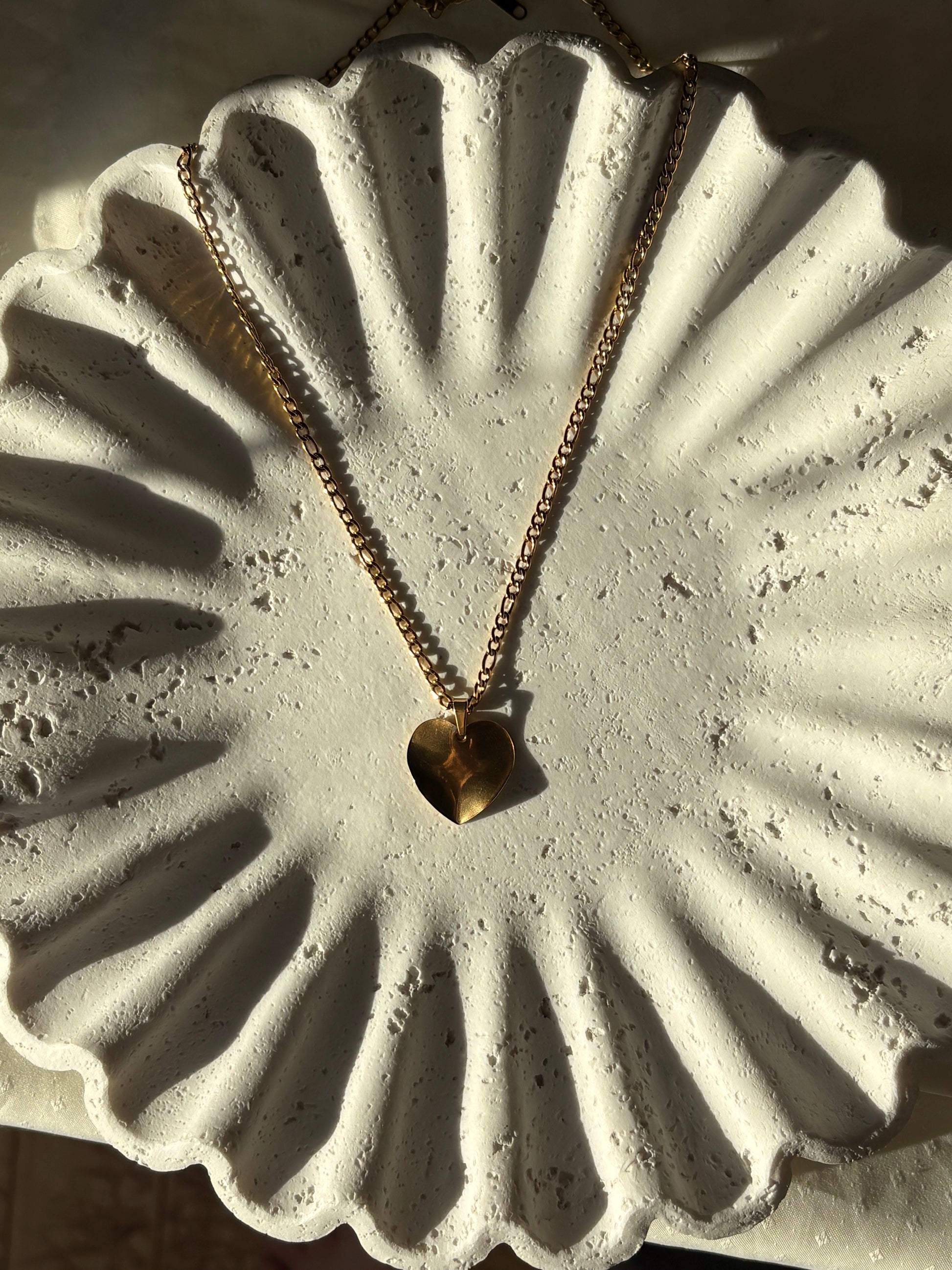 An organically shaped pendant with a smooth, wavy contour that looks hand-formed. Modern, clean, and a little bit bold — the perfect signature piece. On a 17.5 inch figaro chain