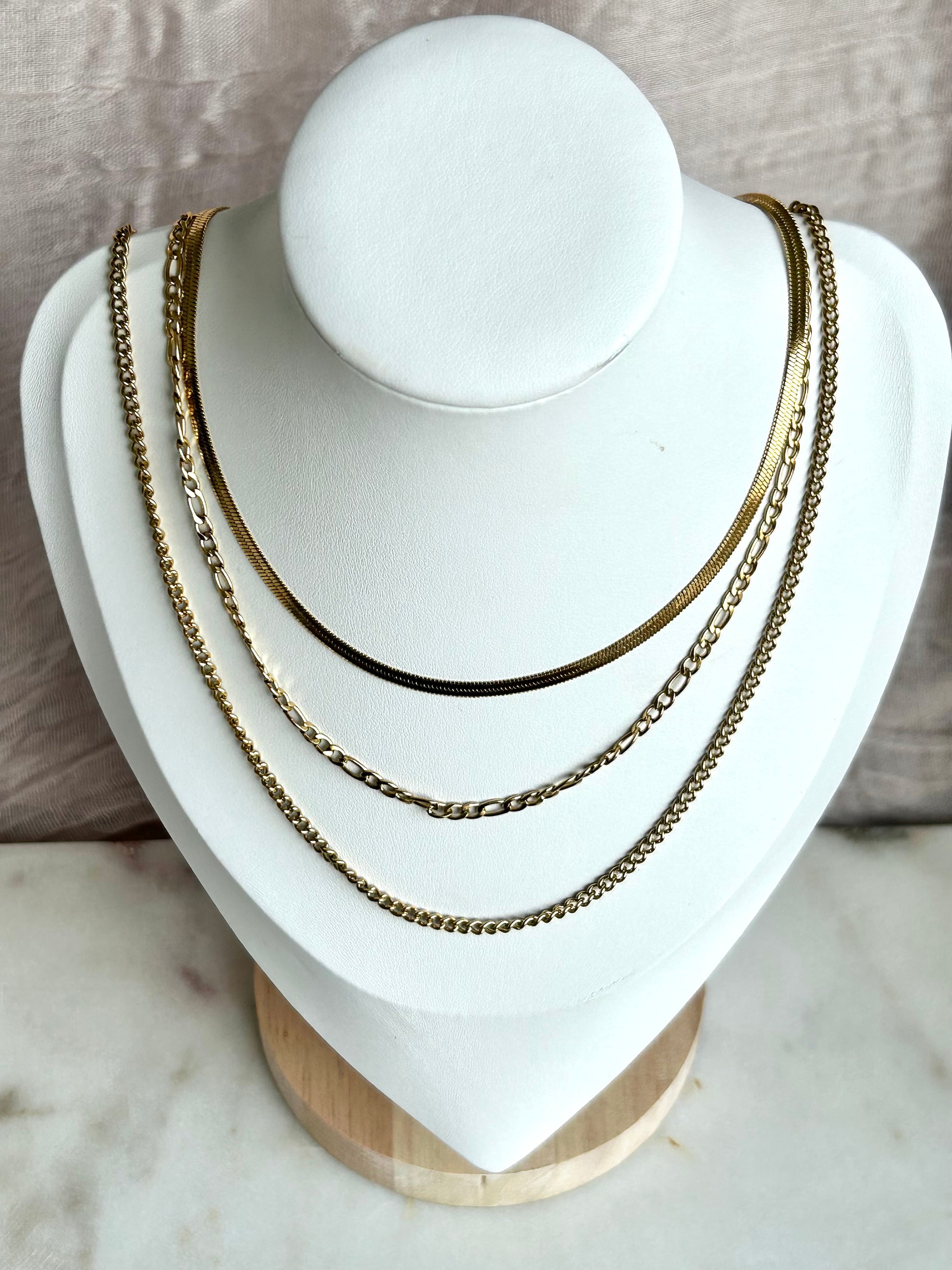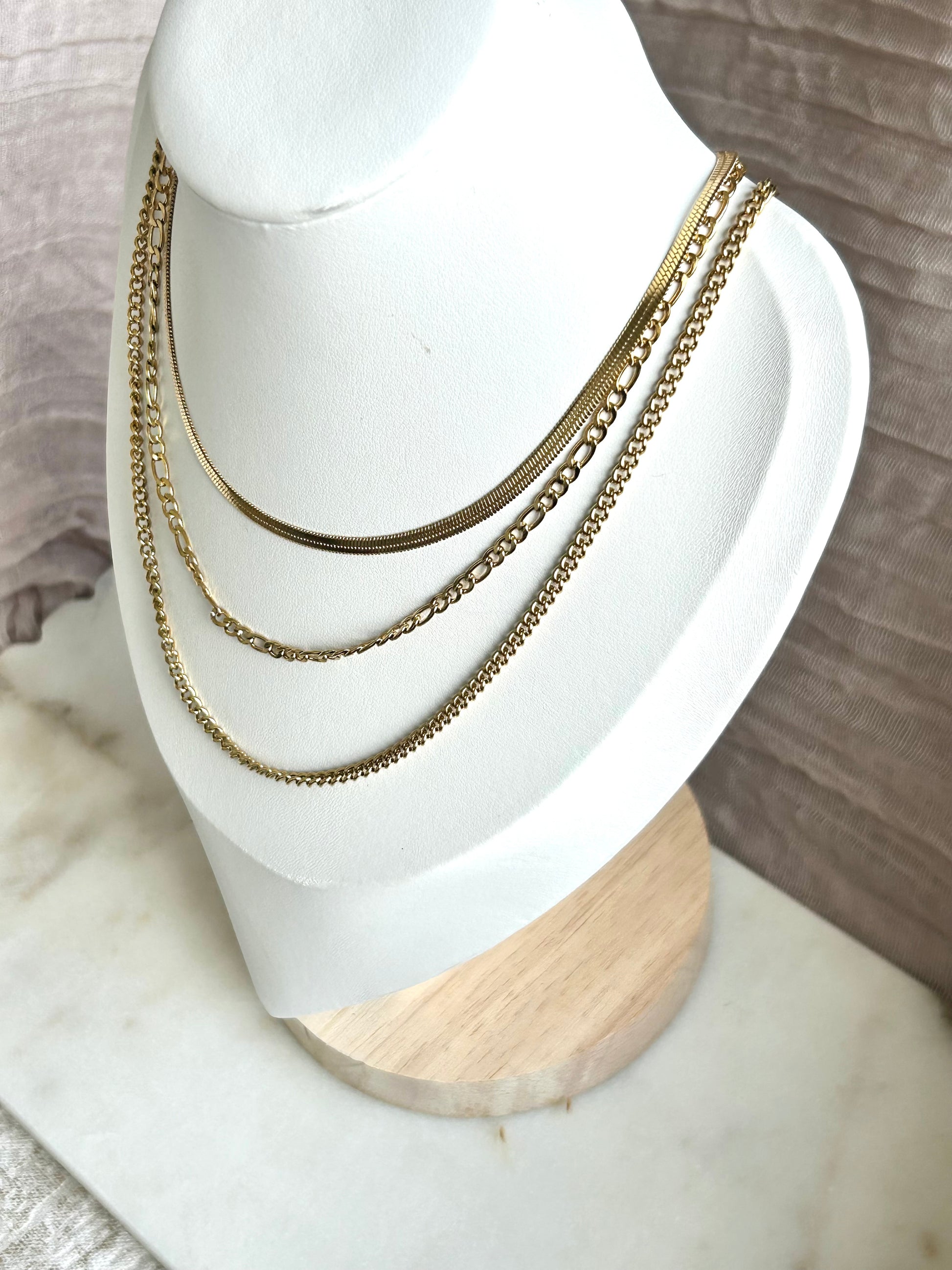 Make a statement in our Go Your Own Way 3 layered chain necklace. Layered chains are all the rage right now! All chains have an extender of 8 cm.
