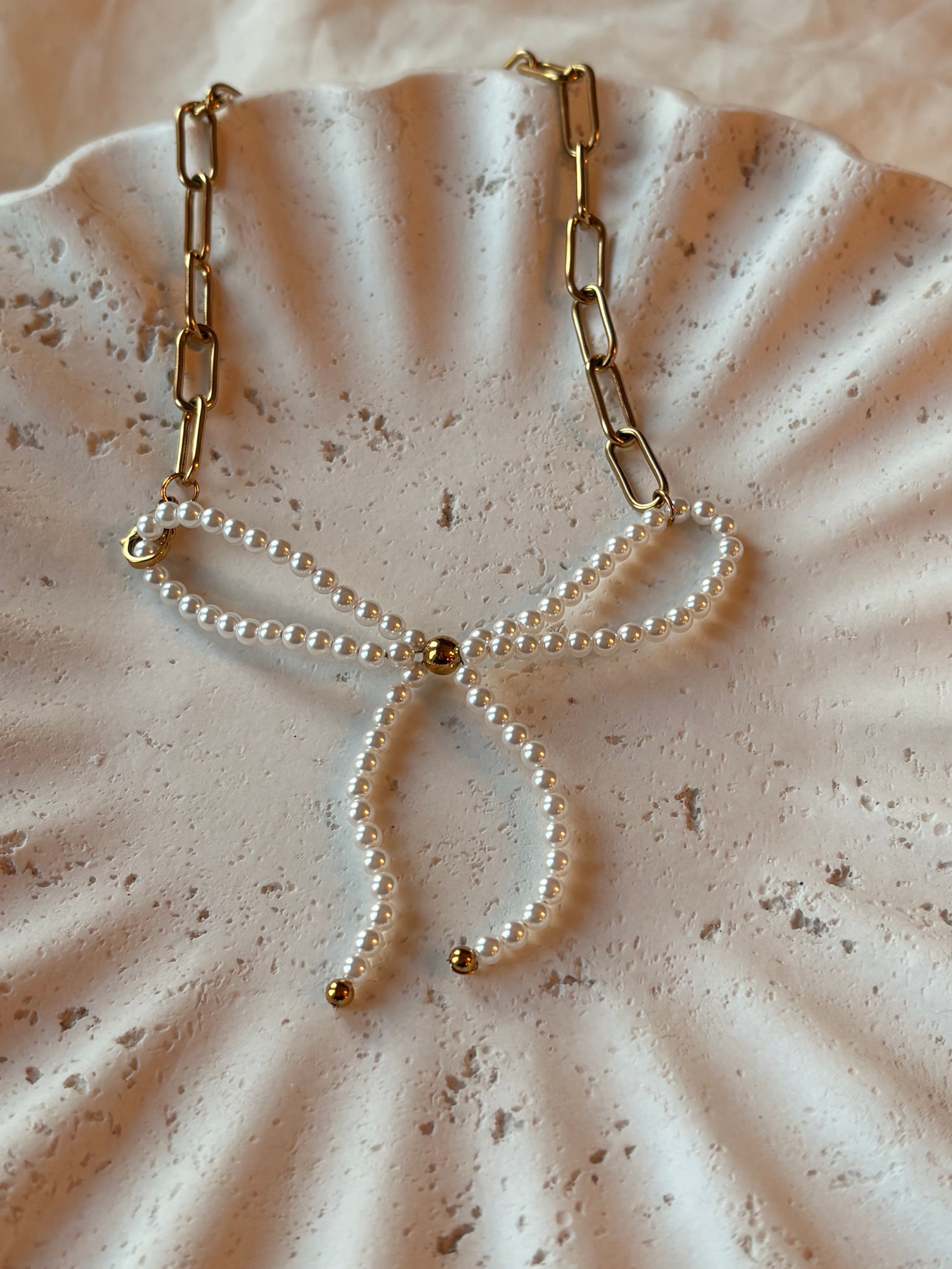 14 mm, choker length! Chunky paperclip bow necklace, for the bow lovers!